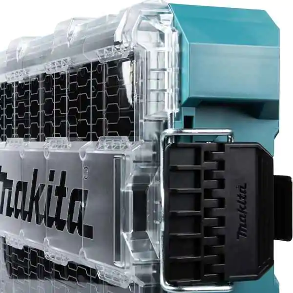• Posebno korisna karakteristika je odsustvo interferencije poklopca sa unutrašnjim sadržajem, što povećava kapacitet skladištenja i olakšava pristup. Takođe, MakTrak sistem omogućava montažu na zid ili poklopac, pružajući maksimalnu fleksibilnost pri organizaciji radnog prostora. Zahvaljujući modularnoj kompatibilnosti, Makita P-91045 postaje nezamenljiv deo svakog profesionalnog seta, idealan za majstore, električare, instalatere i sve koji traže kvalitetno, čvrsto i pouzdano rešenje za organizaciju alata.