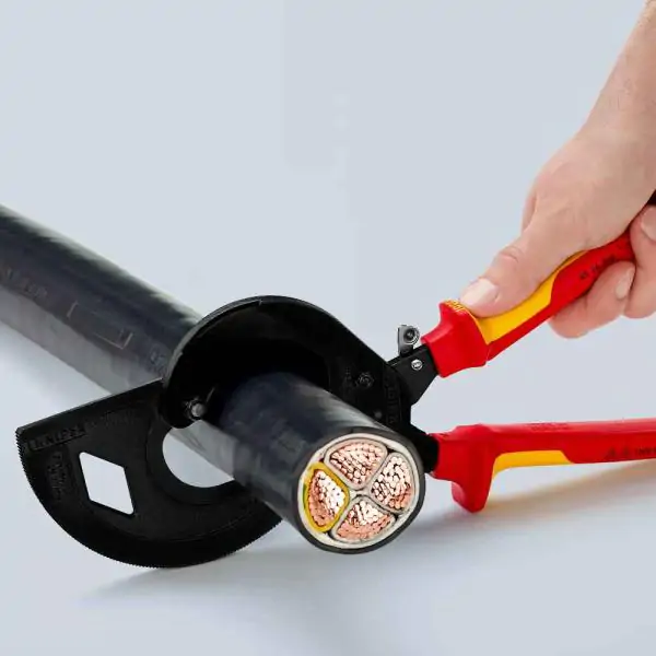 • Knipex 95 36 320 VDE cable cutter predstavlja profesionalni alat dizajniran za brzo, precizno i efikasno sečenje kablova velikih prečnika. Zahvaljujući naprednom trostepenom prenosu, ovaj sekač maksimalno olakšava posao električarima, instalaterima i tehničarima koji svakodnevno rade sa kablovima većih preseka.